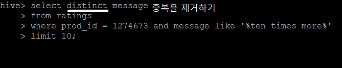 평점이 제일 낮은 물건 메세지안에서 ten times more이라는 단어를 포함하는 메세지를 조회한다.