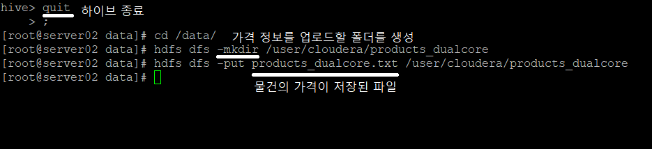 2-3-1) 하이브를 종료하고 하둡에 제품 정보 로드
