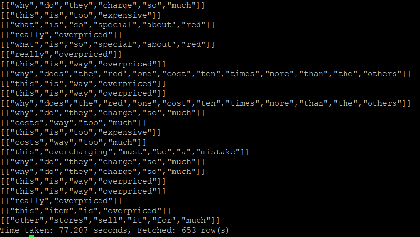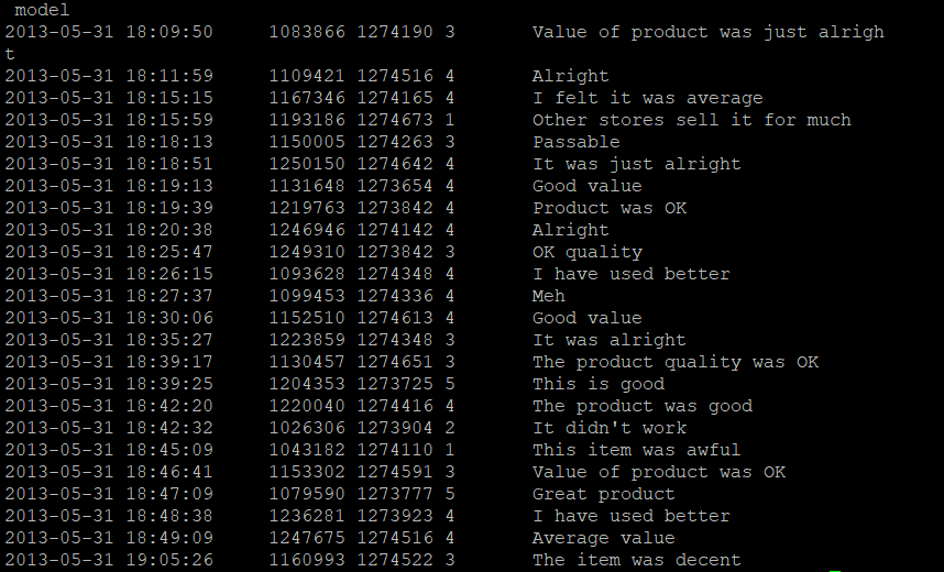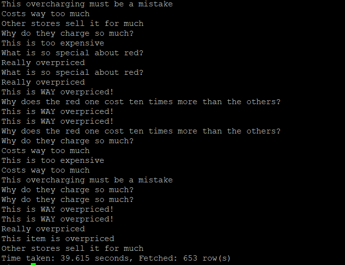 653줄의 상품평들이 조회되는데 많아서 보기가 어렵다.