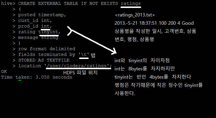 테이블생성은 다시 Hive에 들어가서 해줘야한다.