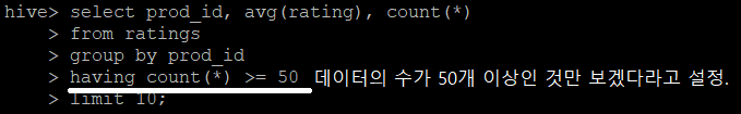 함수를 조건할 때에는 where이 아니라 having을 사용한다.