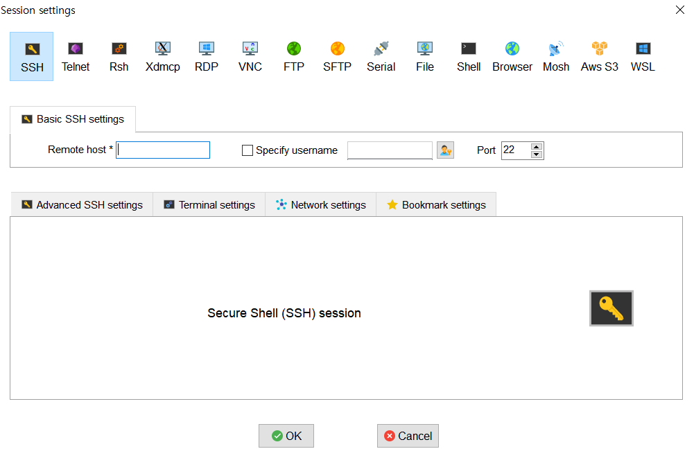 Username : username과 비밀번호로 이루어져있다면 username을 입력하면 되며, ssh키로 되어있다면 옆에 아이콘을 눌러서 키를 불러와서 사용할 수 있다.